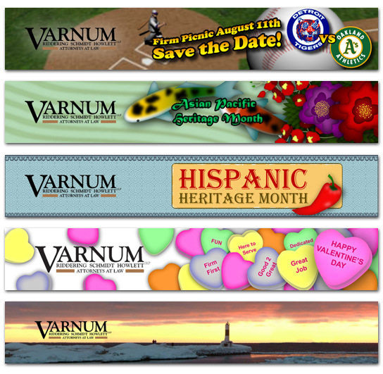 Designed a series of digital web banners for Great Lakes Wholesale and Varnum Law, promoting special events and sales. Each banner was tailored to the company’s branding and messaging, balancing clear communication with eye-catching visuals.